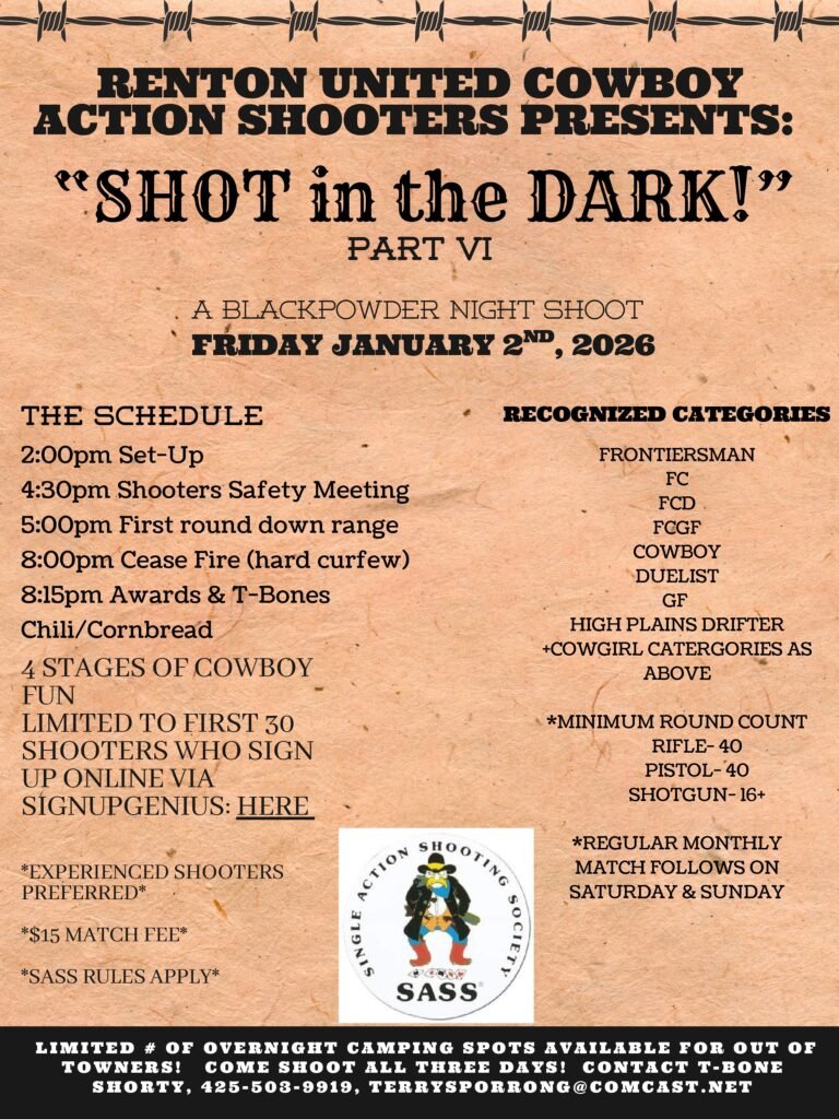 Friday nights 5th annual “Shot in the dark” was a beaming success Thanks to the hard work and dedication of T-Bone Shorty and has crew. 37 participants from as far away as Montana, Idaho and Oregon did their best with “finding the front sight”, a common battle cry of the night.